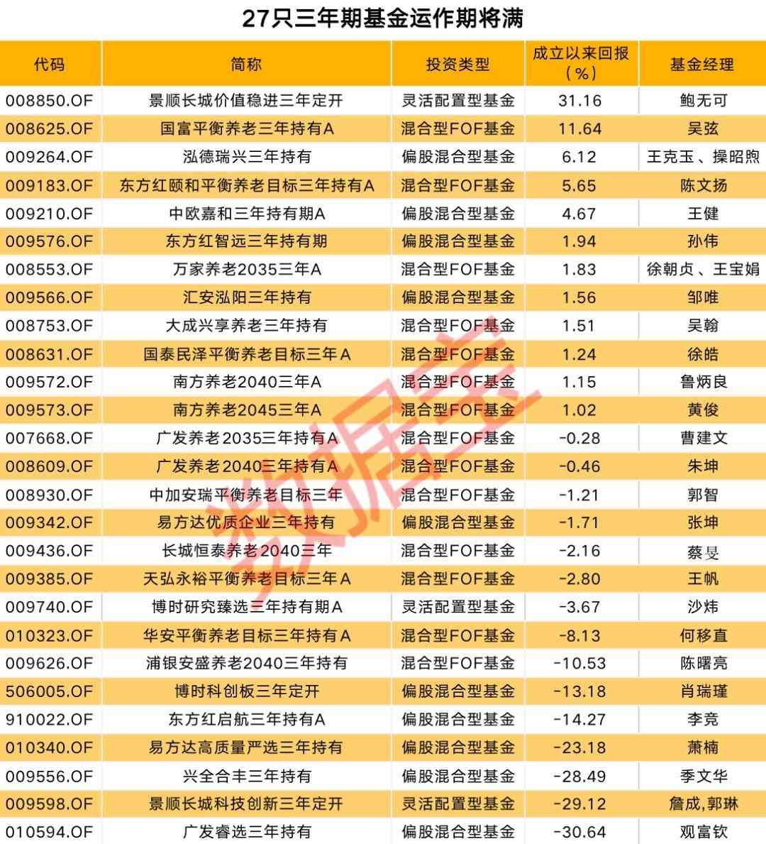 在今年内,有27只基金三年运作期将满,将开放日常赎回等业务,投资者可以选择“落袋为安”,也可以继续持有。