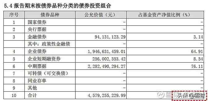 所以基金季报中,要高度留意 “报告期末按债券品种分类的债券投资组合” 这张表。
