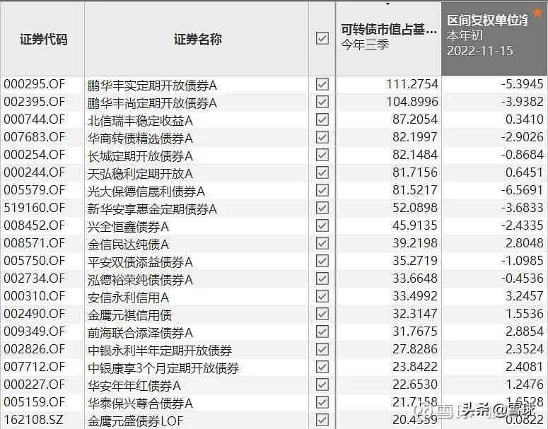比如下表这些债券基金,你看名字恐怕不会有任何联想到 “可转债”,但是看持仓才会发现,高比例的可转债持仓。进而导致其中不少今年迄今是亏损,而且亏损不少的。