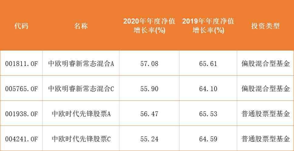 (数据基金定期报告;截至2020年12月31日,中欧时代先锋2019年基准24.32%、2020年基准19.31% ;中欧明睿新常态2019年基准28.68%、2020年基准21.73%。)