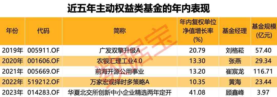 统计数据显示,基金年度冠军极大概率会从每年前11个月回报率前十的基金中产生。2019年和2022年的冠军基金均为当年前11个月回报率最高的基金,分别是广发双擎升级A和万家宏观择时多策略A。两只基金相当于提前一个月锁定冠军席位,并保持到了终点。