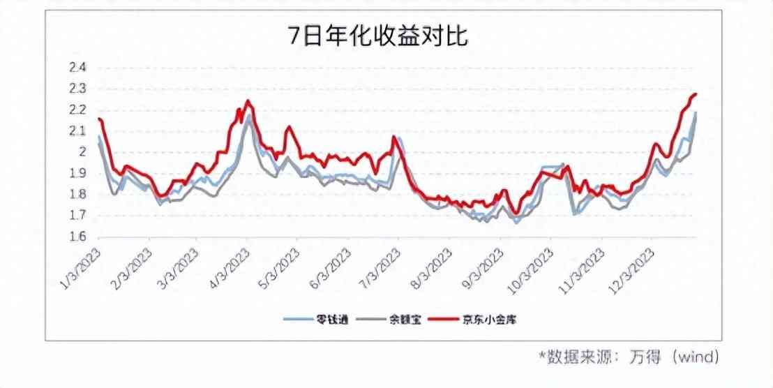 由此,可以算出三大平台全年的7日年化收益均值,由低到高分别为:余额宝1.8395%、零钱通1.8620%和京东小金库1.9216%。