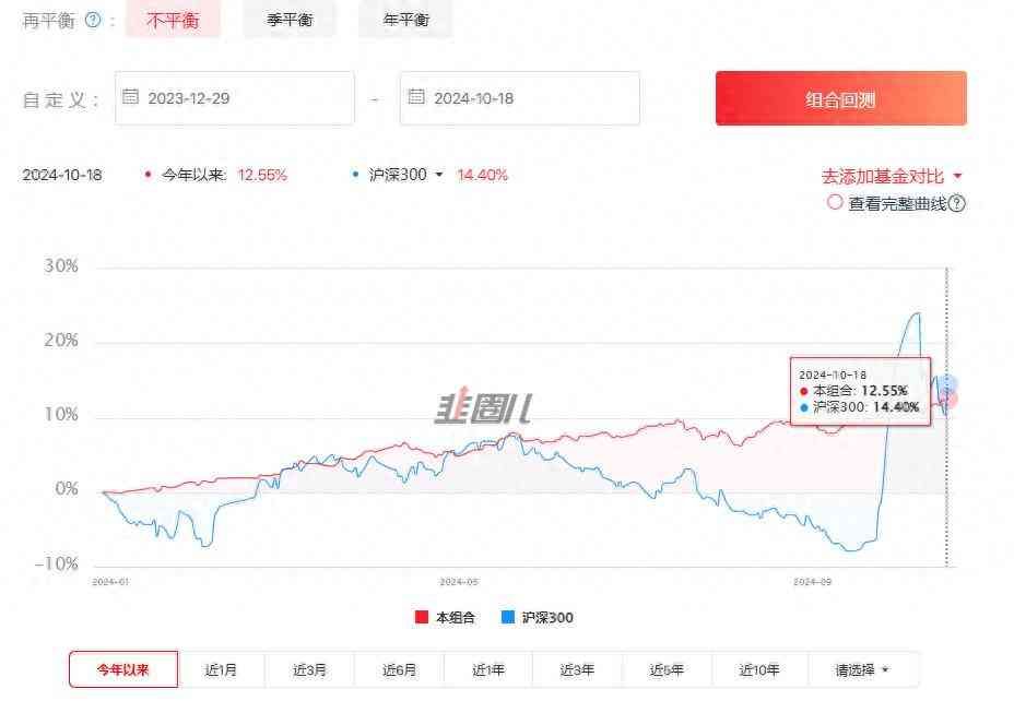 今年以来沪深3指数涨幅14.4%,永久投资组合涨幅12.55%。略微跑输沪深3,不过纵观整个曲线,主要还是国庆前的暴涨拉高了沪深3今年的涨幅。