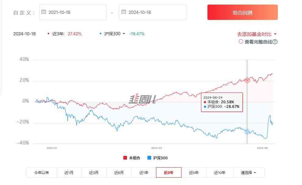 可以看到差距进一步拉大,近3年涨幅达到了27.42%。可以看到降低了债基和货基的比例,收益率更高了,但是曲线的波动也开始变大了。