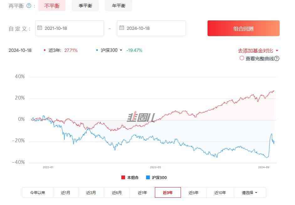 发现韭圈儿上有个基金组合回测的工具。创建了几个遵循“永久投资组合”原理的基金组合,看看持有多年是否能跑赢市场,实现稳定盈利。