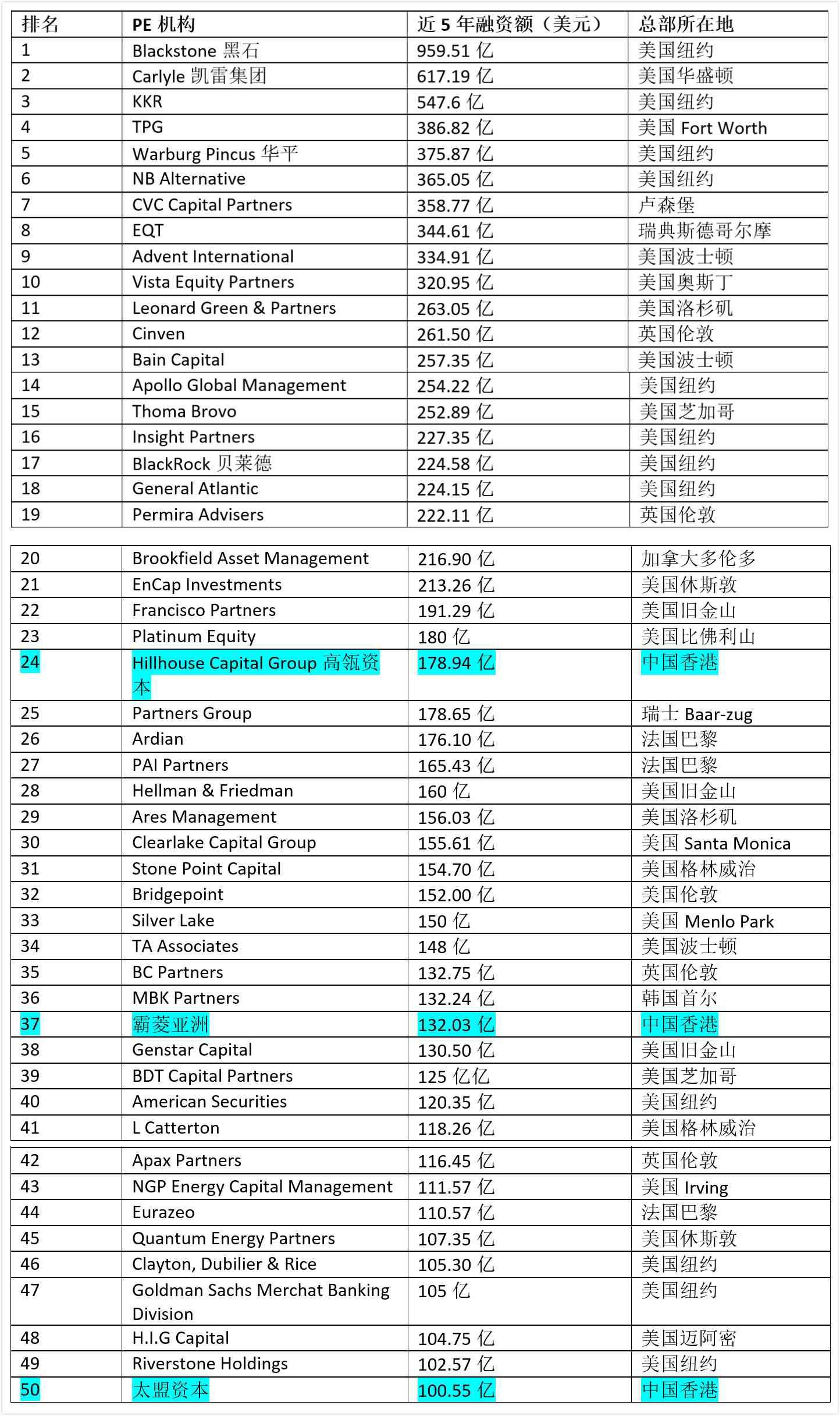 美国私募基金公司排名一览表,PE必看丨全球Top 300 私募股权基金榜单出炉
