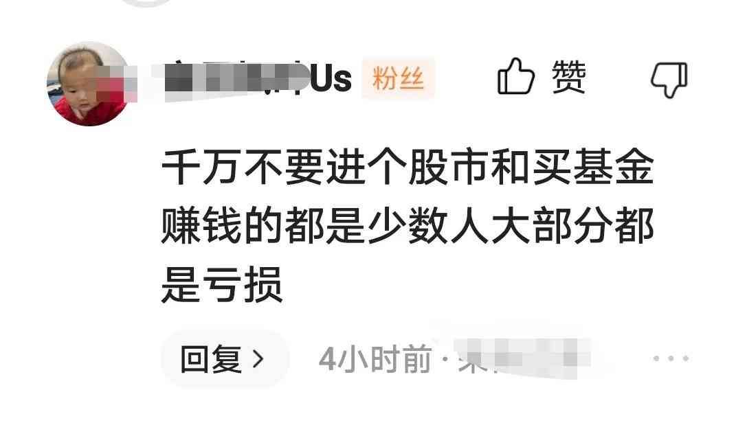 千万不要进入股市,买基金赚钱的都是少数人,大部分人都是亏损的。 这是一位朋友的留言,谢谢这位朋友 。