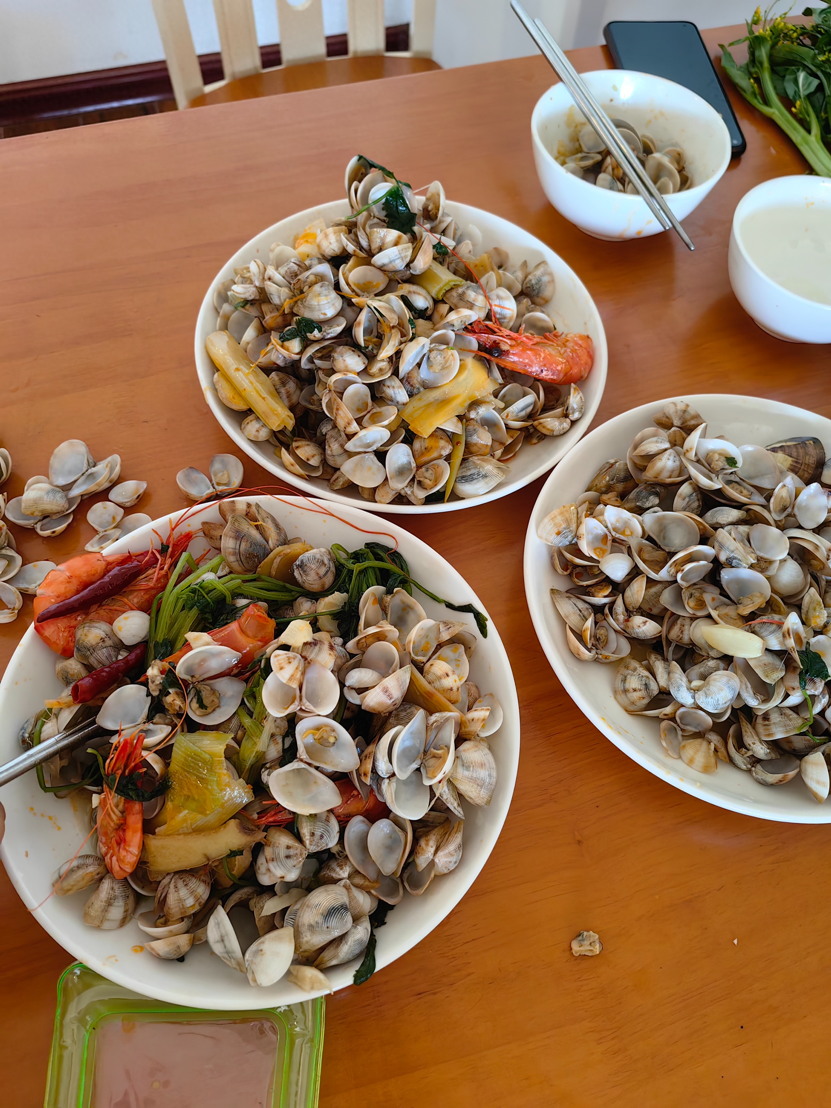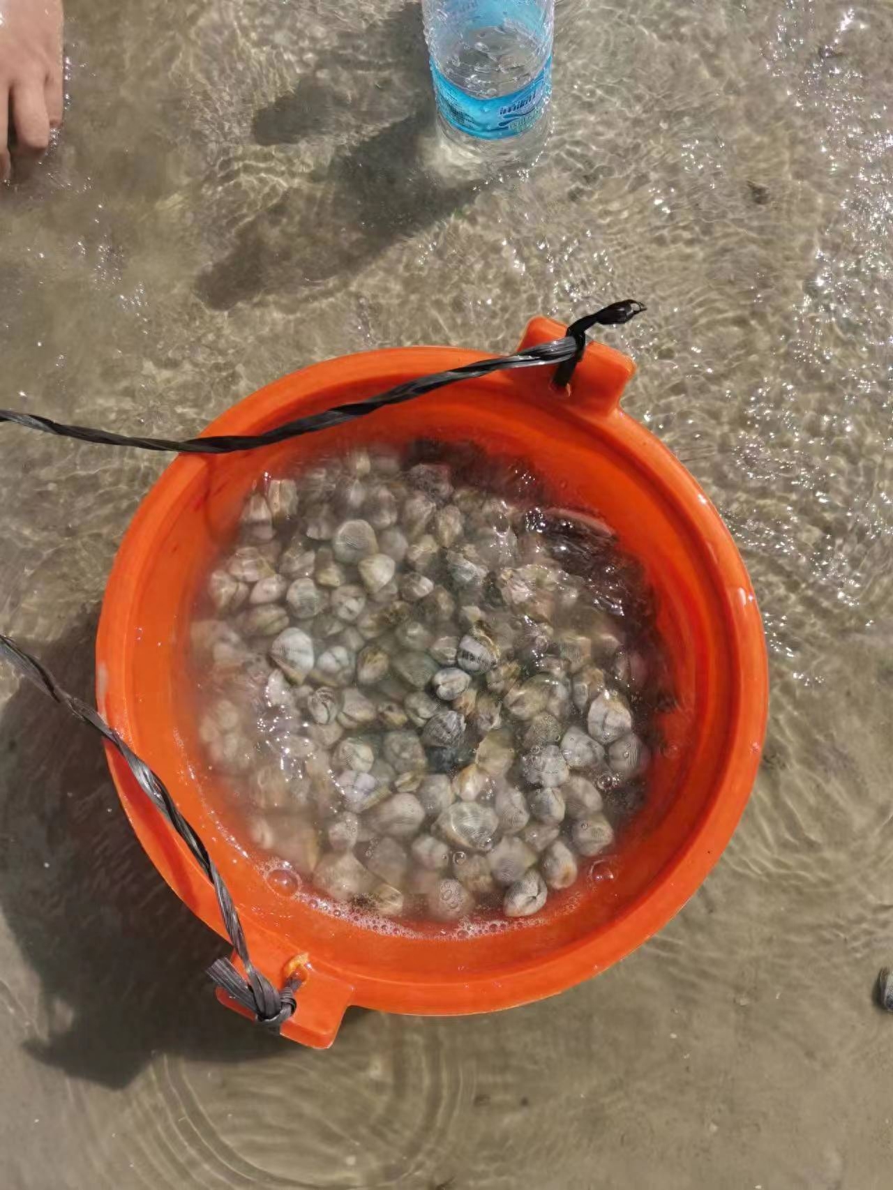 3.赶海的地点:海枯石烂(抓螃蟹)、三干海(抽金虾)、金滩(挖螺、抓小鱼)、红树林(挖螺、挖蛏子)。我们只去了红树林,没有挖到螺和蛏子,只挖到贝壳。我们这种外行,确实只适合挖贝壳,贝壳也很好吃。大多数人都是挖贝壳。我觉得不用强求品种,有就行。