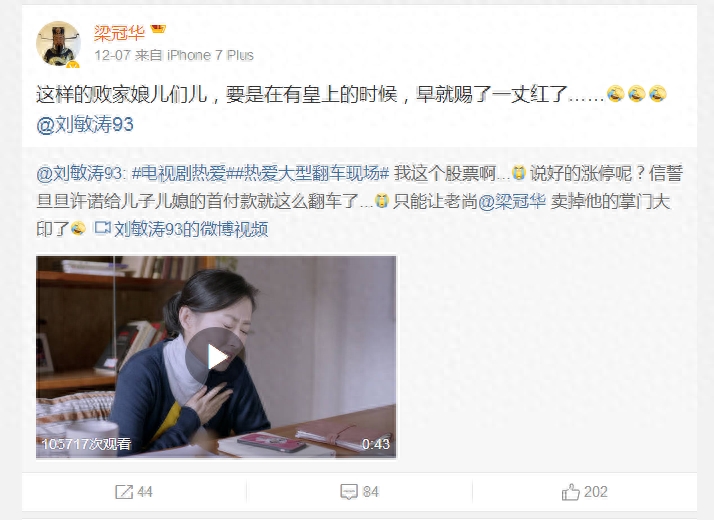 不过梁冠华老师在微博上和刘敏涛的互动还是很有爱的,两人也算是隔空相互掐戏了。