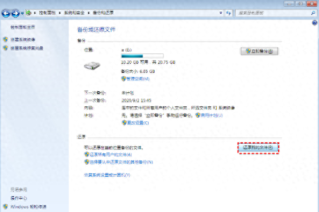 win系统还为用户提供了数据备份的工具,只要你在数据丢失前有使用它去备份过,就可以通过这个方法去进行还原。桌面左下角“搜索”输入“控制面板”然后打开,选择“备份和还原”功能,点击右下角“还原我的文件”然后可以选择“选择其他日期”去选择备份恢复丢失的数据。