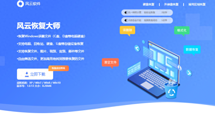 如果上面的几个方法还不能帮你解决问题的话,那么可以使用一些专业的恢复数据的软件来帮你恢复,小编一直自用的就是风云恢复大师软件,这款软件的恢复功能是很专业的,可以轻松的帮助用户恢复文件,不仅是可以恢复电脑上丢失的数据,还可以恢复移动硬盘,U盘,手机等其他外接设备的数据,软件的界面设计很简约,操作也是很简单的,大家打开软件后选择好需要扫描的区域,扫描完成后就可以去筛选数据,在恢复之前还可以进行预览,确保正确性,确定后选择恢复就可以!
