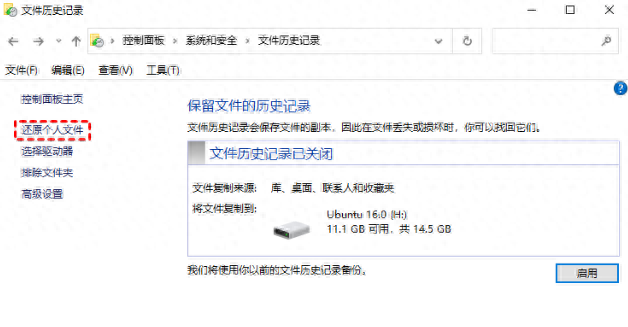 只要你的电脑一直有开启文件历史记录功能,那么在数据丢失事件发生之后就可以通过这个功能来恢复,电脑桌面左下角进行“搜索”输入“控制面板”打开面板,然后打开“文件历史记录”。点击左侧的“还原个人文件”然后选择需要恢复的文件以及数据,点击“还原”即可。