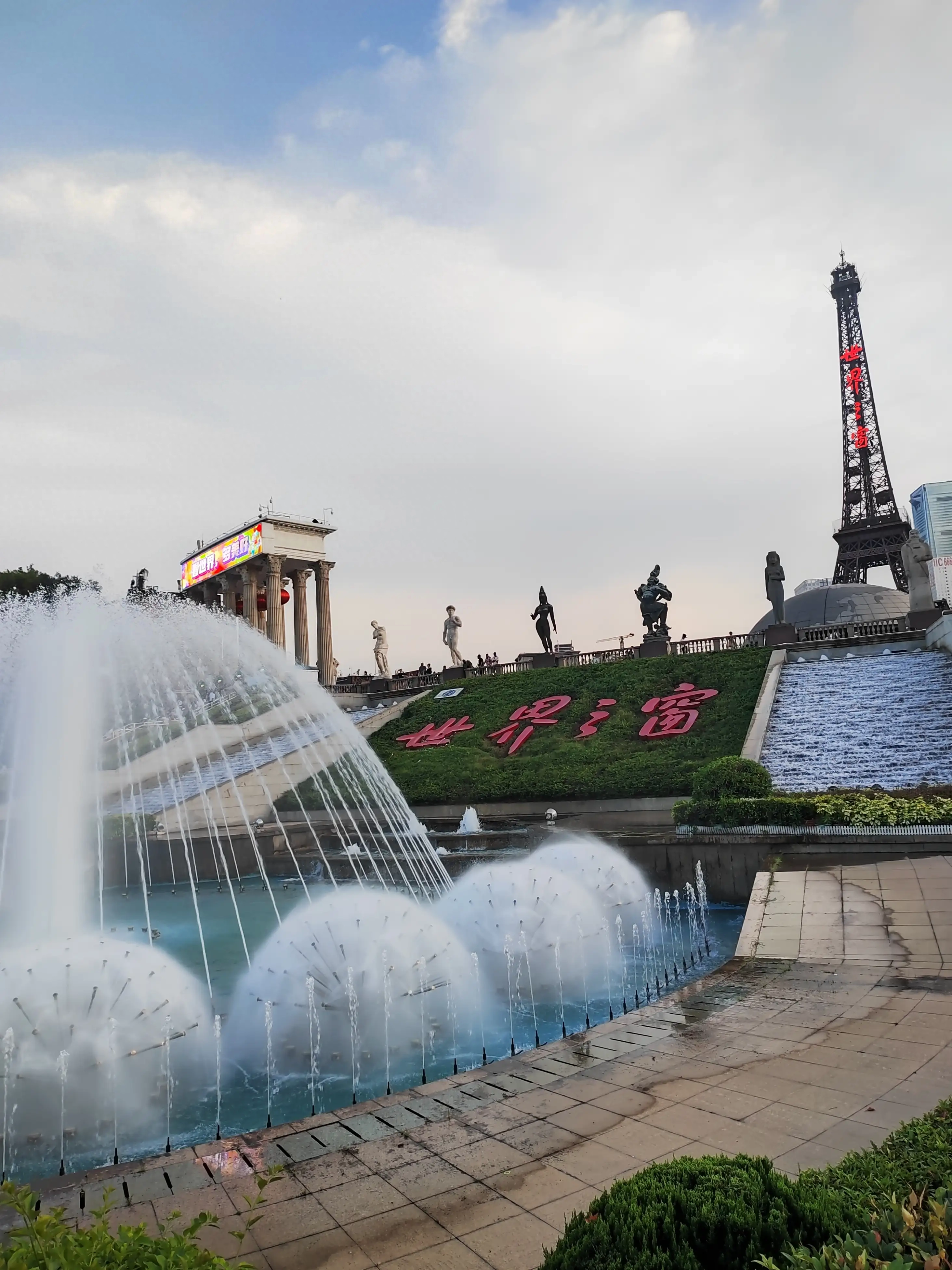 我们出去原路返回,对,没错,就是原路返回,逆着回到园区正门。毕竟进来只顾玩,中途有很多景点都没有去看。不想走回头路的话,也可以在铁塔下面蹦迪,有疯狂的DJ,劲爆的音乐,喜欢的人们也可以在那再看看。毕竟九点后游乐设施陆续就要停止营业,玩不到了