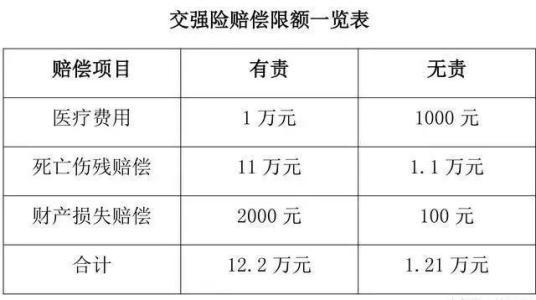 交强险赔偿范围和金额(交强险赔偿标准明细表)
