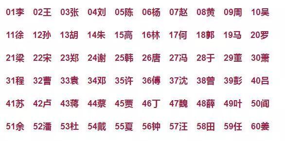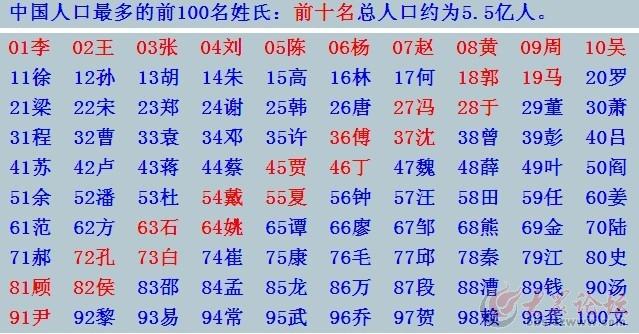 中国姓氏人口排名(中国前400姓氏排行及各姓氏代表名人)