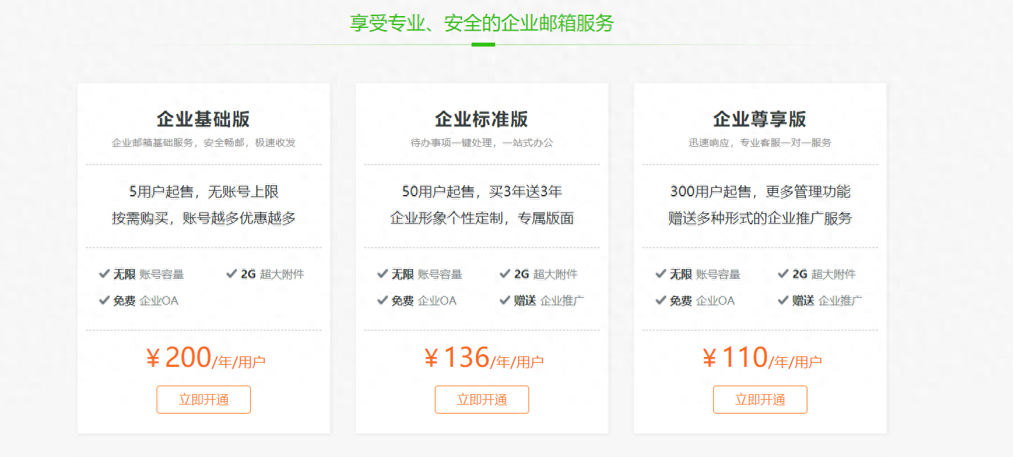 电子邮箱地址由三部分组成:用户名+@+邮箱域名,邮箱地址的概念和个人手机号差不多,都是具有非常强的商务身份属性,而对于有公司官网的用户来说,可以使用官网域名作为企业邮箱的后缀域名,可以彰显公司的身份,对外交流也非常的具有辨识度。