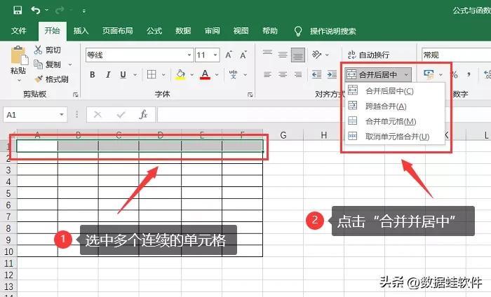 想要合并单元格某一区域,就选中多个需要合并的单元格(横向或者纵向都可以)。选择好后,点击【合并并居中】。