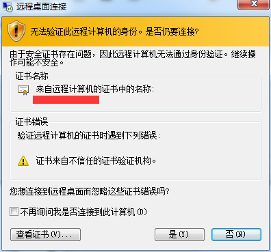 8、出现连接信息弹框,尝试进行远程连接桌面。