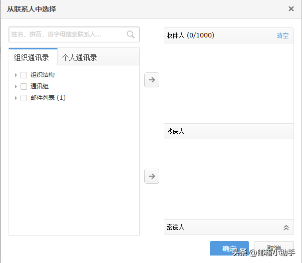?可以通过点击 或 按钮,将通讯录选择窗口打开。在通讯录窗口中,您可以选择需要添加的联系人(如下图所示);