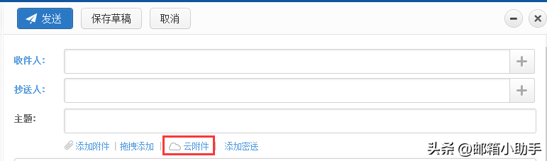 ?如果附件大小超过1M上限,建议通过云附件将附件以链接的形式发送给对方,供其下载(如下图所示);