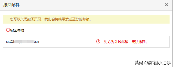 1.仅撤回发往本域邮箱的邮件,不支持从外域邮箱撤回。