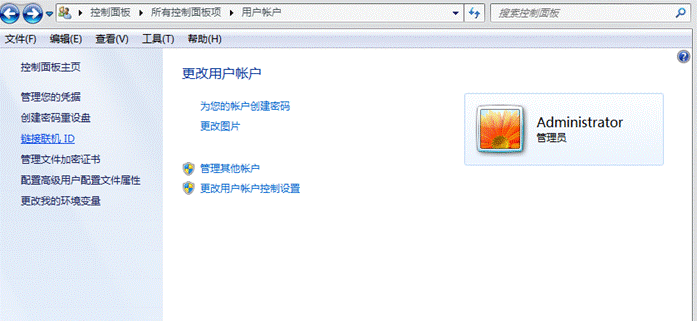 “控制面板”选项,进入windows 7控制面板,选择“用户帐户”选项之后即可进入用户帐户设置,如下图。