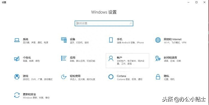 二、进入“设置”选项,进入设置界面,选择“帐户”选项之后即可进入用户帐户设置,如下图。