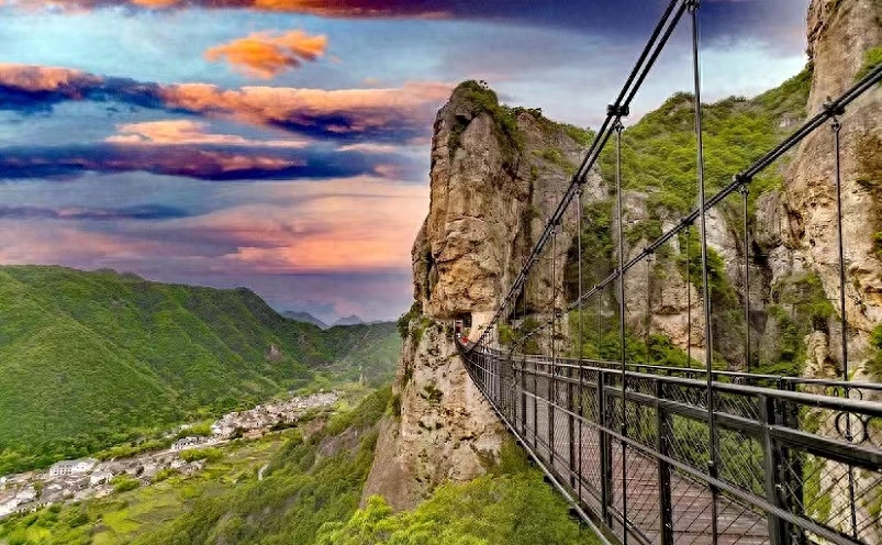 百丈飞瀑,古称百丈漈,为一个由流水雕琢而成的峡谷,纵深约三千米,落差达三百五十余米,形成一漈百丈高、二漈百丈深、三漈百丈宽的阶梯形瀑布群。其中,百丈一漈高达207米,沟壑纵横,绝壁如刀削,为中国最高的单体瀑布。