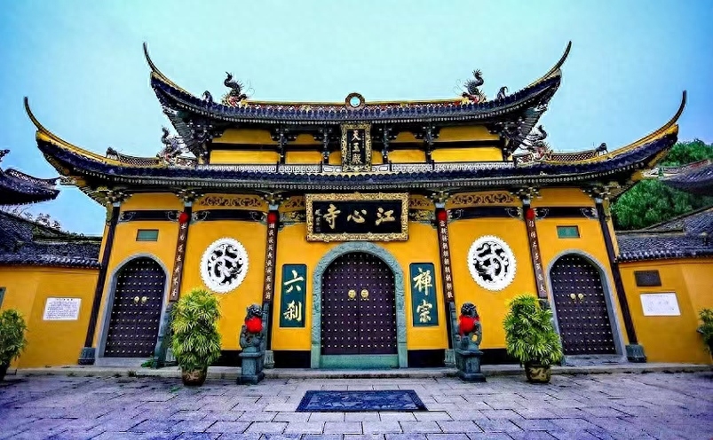 江心寺,位于东西双塔之间,临江而立,庙宇宏伟,是岛上最大的建筑群,曾被列为禅宗“五山十刹”之一。在描写江心屿的传世之作中,关于江心寺的大作超过半数。寺院大门两侧刻有著名叠字联:“云朝朝朝朝朝朝朝朝散,潮长长长长长长长长消”,生动地描绘了浮云聚散、潮起潮落的奇特景象,令人浮想联翩。