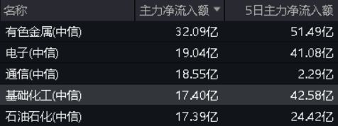 资金面上,近日,主力大举涌入化工板块抢筹。Wind数据显示,今日,基础化工板块获主力资金净流入17.4亿元,净流入额在30个中信一级行业中位居第4;近5日,基础化工板块吸金42.58亿元,在30个中信一级行业中高居第3。