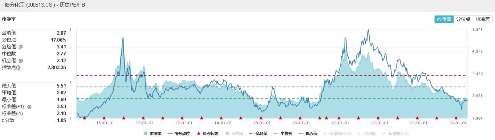估值层面,当前亦显现出了布局信号。Wind数据显示,截至昨日收盘,细分化工指数市净率为2.07倍,仅位于近10年17.06%分位点的低位,中长期配置性价比凸显。