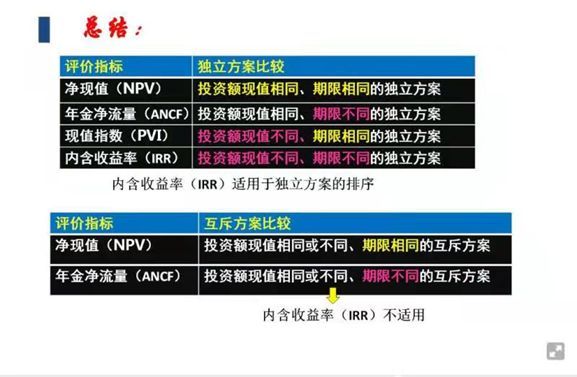 投资评价方案选择(净现值、年金净流量、现值指数、内含收益率)