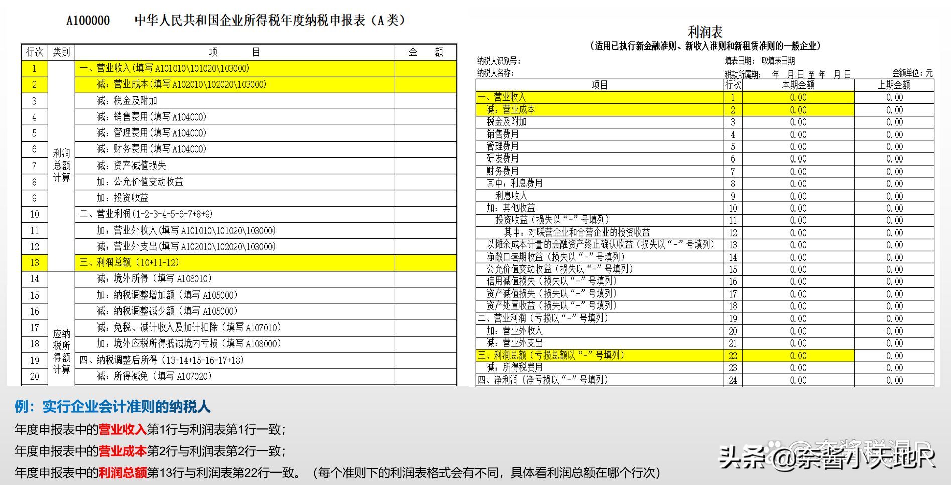 按照年度纳税申报表的填报说明中,主要看A1 《中华人民共和国企业所得税年度纳税申报表(A类)》。