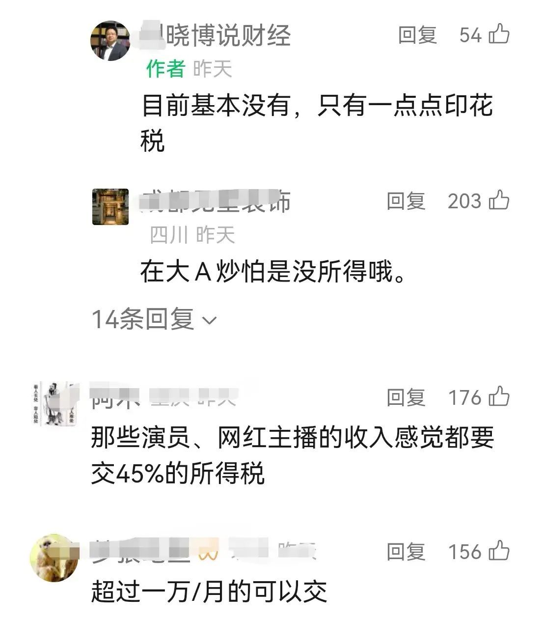4.这些看了 “X 晓博说财经 ”的朋友,应该搞清个人所得税是工资薪酬超过法定额度后应缴纳的税,与养老金是两个不同的概念。并且,是“缴”税而不是“交”税,文字上的含义有非常大的区别,这是该博主文化水平不足所致。