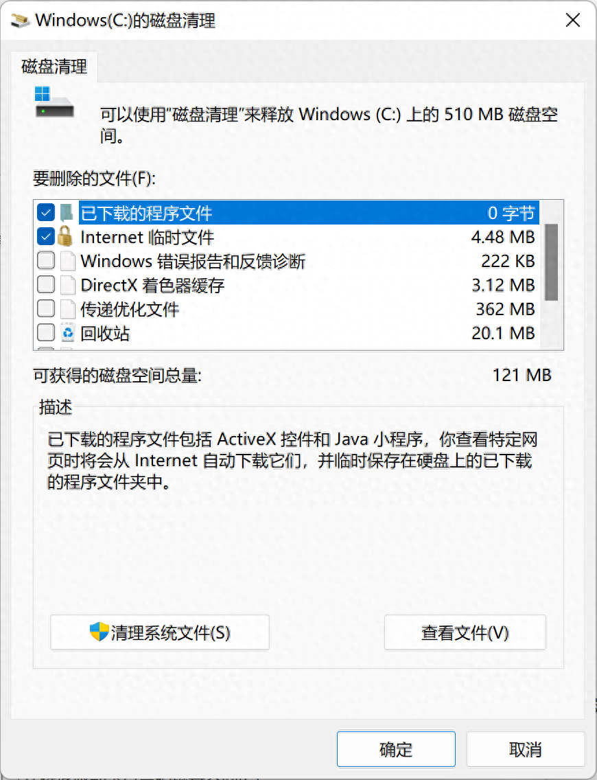 2.我们可以看到可以清理的空间,然后点击确定就可以了。