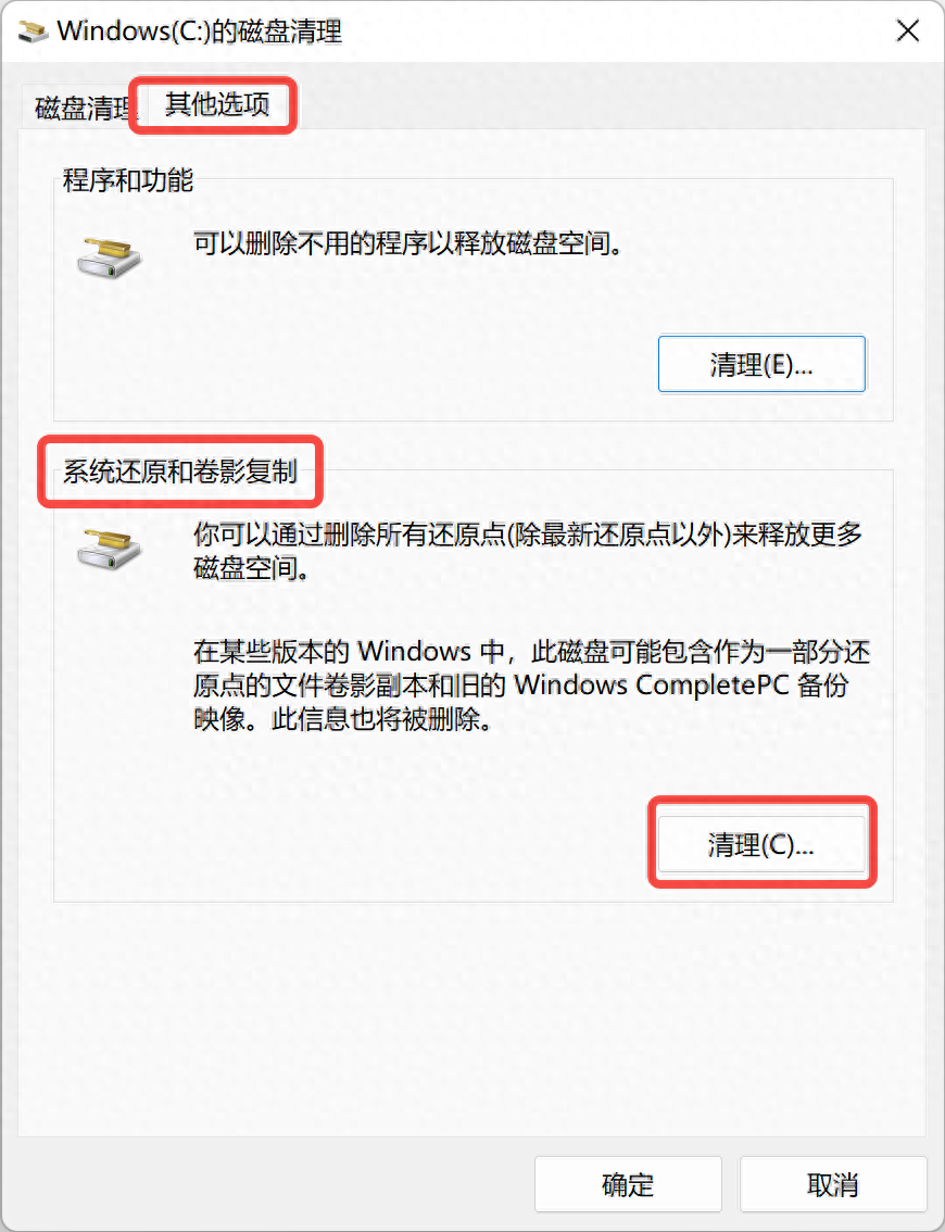 1.来到上方菜单栏的其他选项,找到系统还原和卷影复制,我们点击清理,在弹出的弹窗中点击删除就可以了。