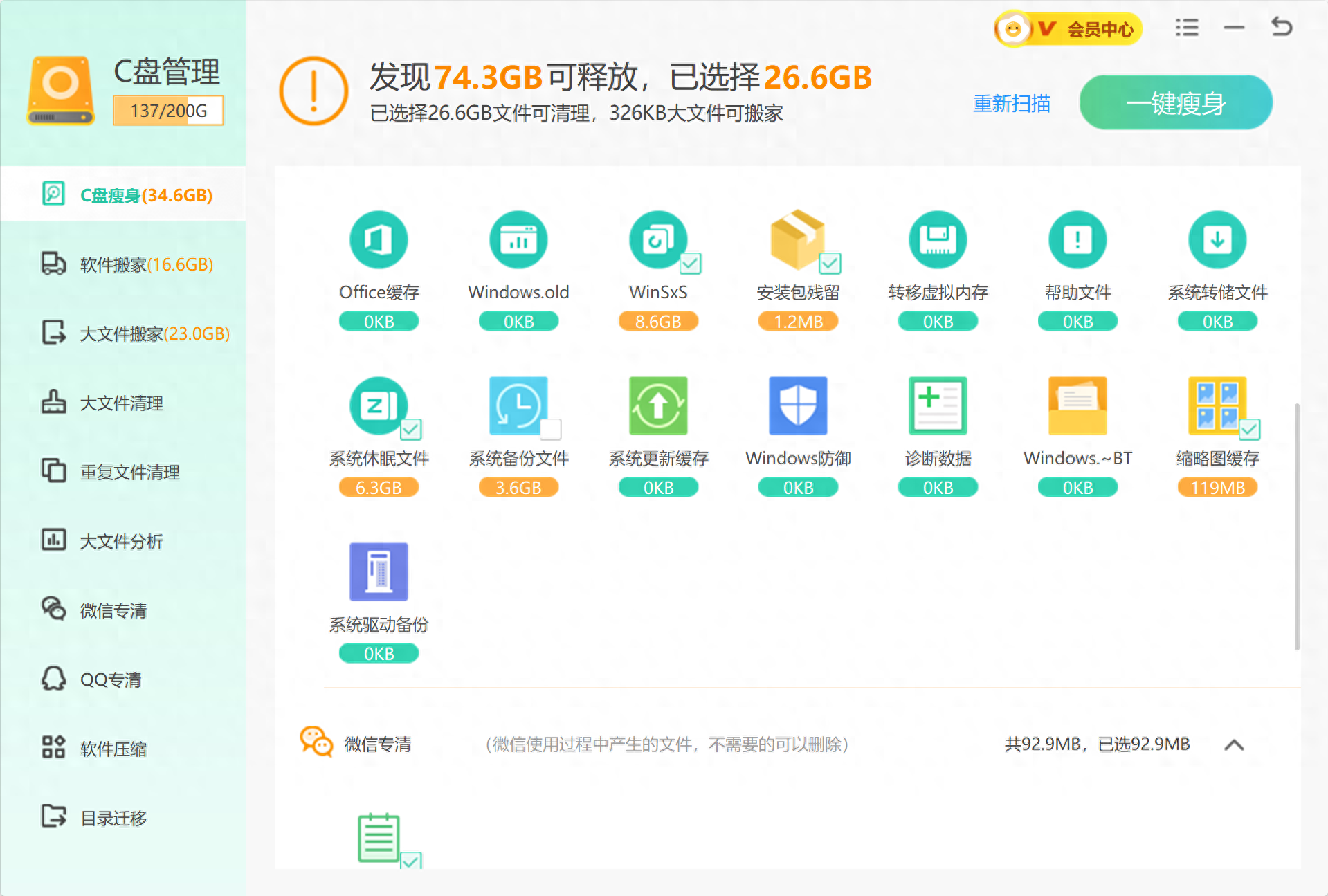 优化大师运用智能算法深度排查电脑中的所有垃圾文件和无用文件,一键瘦身,拒绝电脑卡顿臃肿。