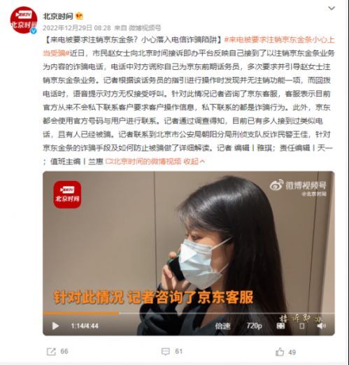 福州市民曾先生向海峡网爆料称,自己接到一个“195”开头的手机号码来电,对方自称是京东客服人员,在确认曾先生的姓名之后,询问他“是否开通了‘京东金条’业务”,称“该服务会产生高额利息”、“会影响个人征信需要马上注销”等。曾先生表示,对方能知道自己的姓名,电话,自己也确实是京东的会员,也开通了京东白条的服务,但有没有开通京东金条(一种信贷服务)并不确定。挂断电话后,曾先生打开京东APP,发现确实有“京东金条”的页面,但点进去却是无法操作。