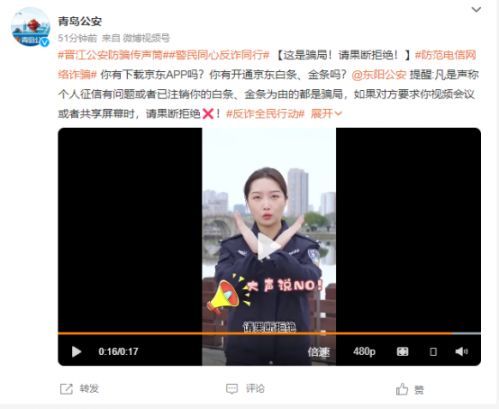 青岛公安官方微博提醒防范该类诈骗。微博截图
