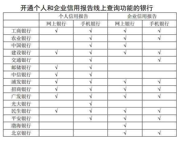 开通个人和企业信用报告线上查询功能的银行