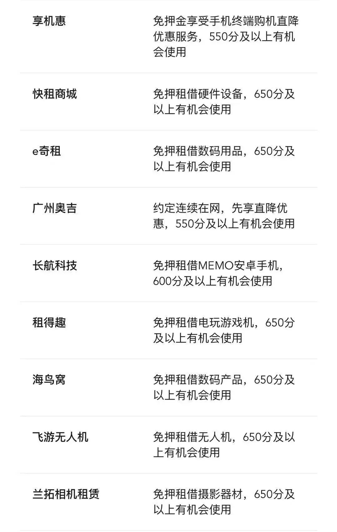 在手机租赁服务中,基本在550分以上就能享受一定的免押额度。