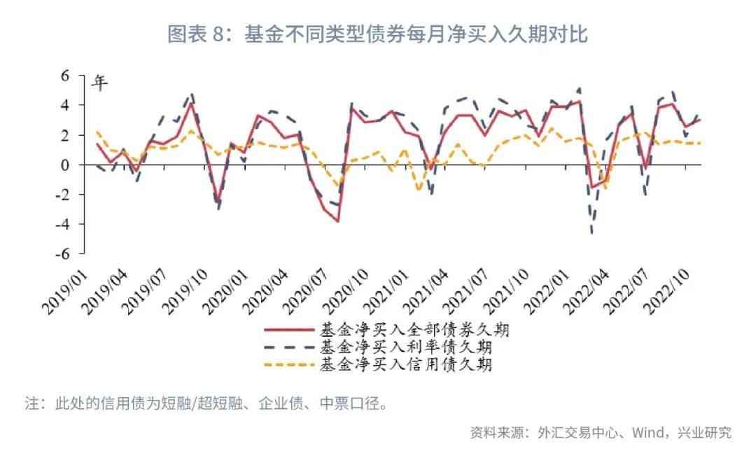 除了测算中长期纯债型基金久期的变动,我们也可以通过测算基金公司净买入债券的久期增量来观察基金在二级市场上债券投资行为的变化。外汇交易中心每月会披露基金公司及产品(以下简称“基金”)净买入不同期限债券的规模,我们基于此数据进行建模。