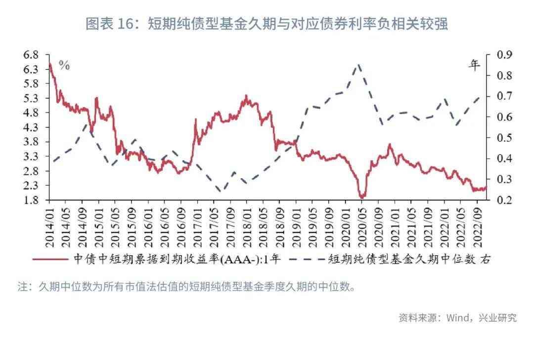 在规律分析方面,从基金久期与债券利率的关系来看,短期纯债型基金、中长期纯债型基金久期