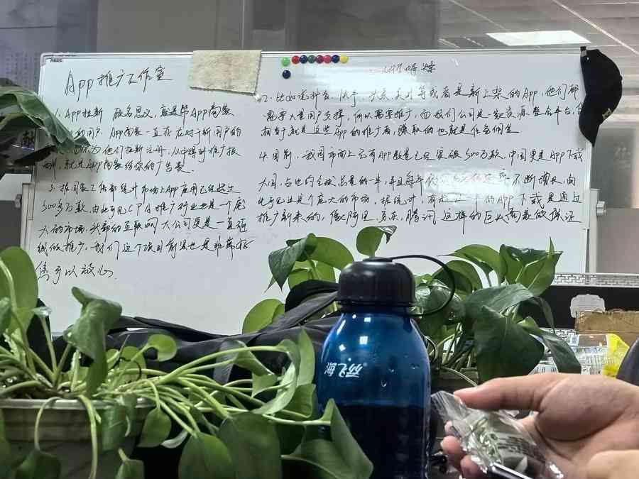 △图为写有“App推广工作室”的白板。