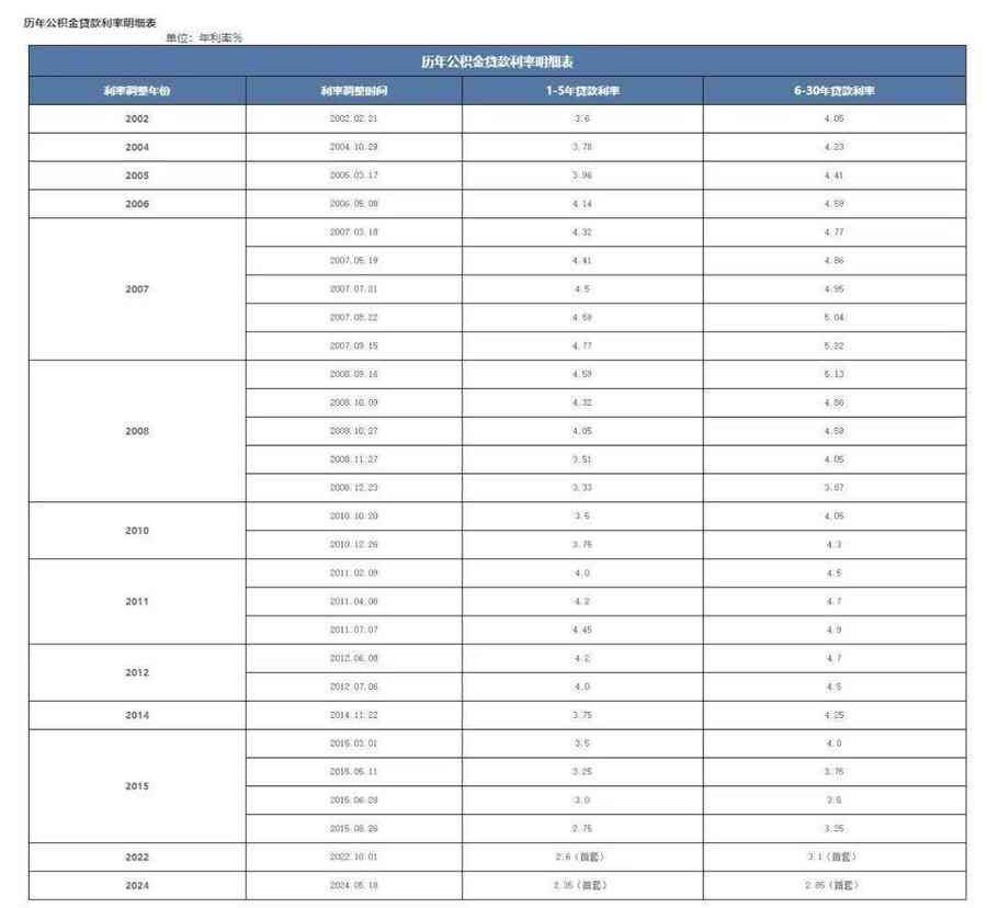 历年公积金贷款利率明细表