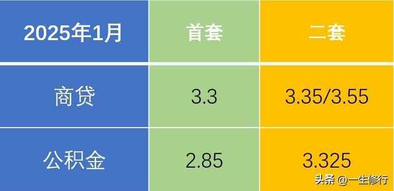 2025年1月组合贷款利率表