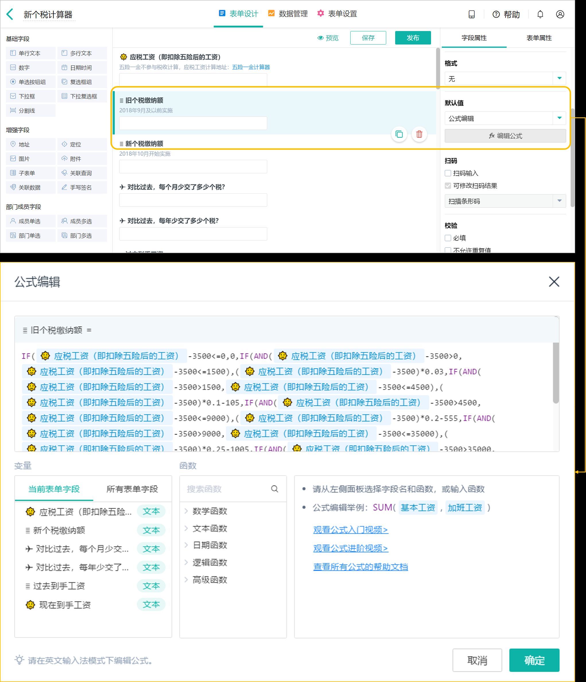 简道云是一个灵活易用的应用搭建平台,为了帮助大家快速计算个税,搭建了一个简道云版的《新个税&五险一金计算器》。