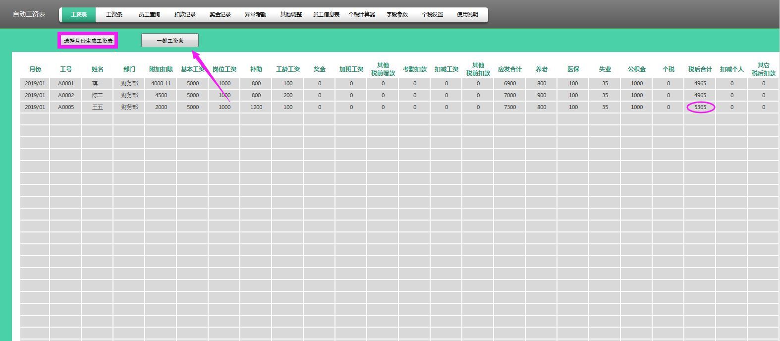 员工当月工资条自动生成操作演示