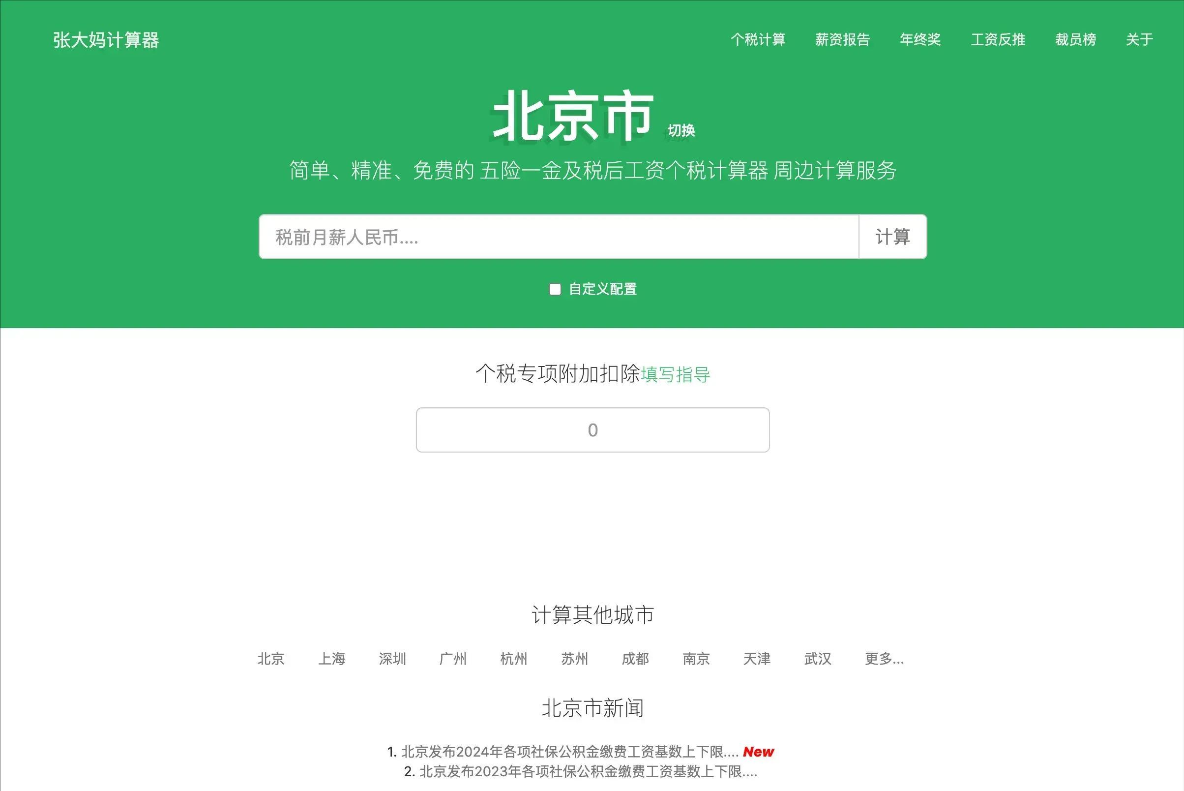 张大妈计算器是一个免费的五险一金及税后工资个税及周边计算器。