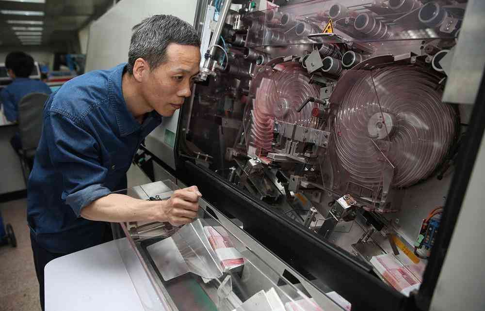 制版完成后便是印刷,人民币的印刷采用了非常高端的印刷设备,通过机器高速运转将特质的油墨涂抹至模板上,再精确地印制到每一张纸币,几乎不会出现印刷错误或污迹的现象,即便出现问题,严密的筛选工序也能分分钟将这些不合格品及时处理,不容丝毫差错。